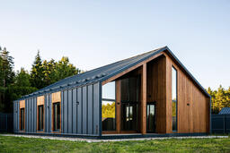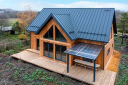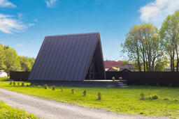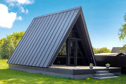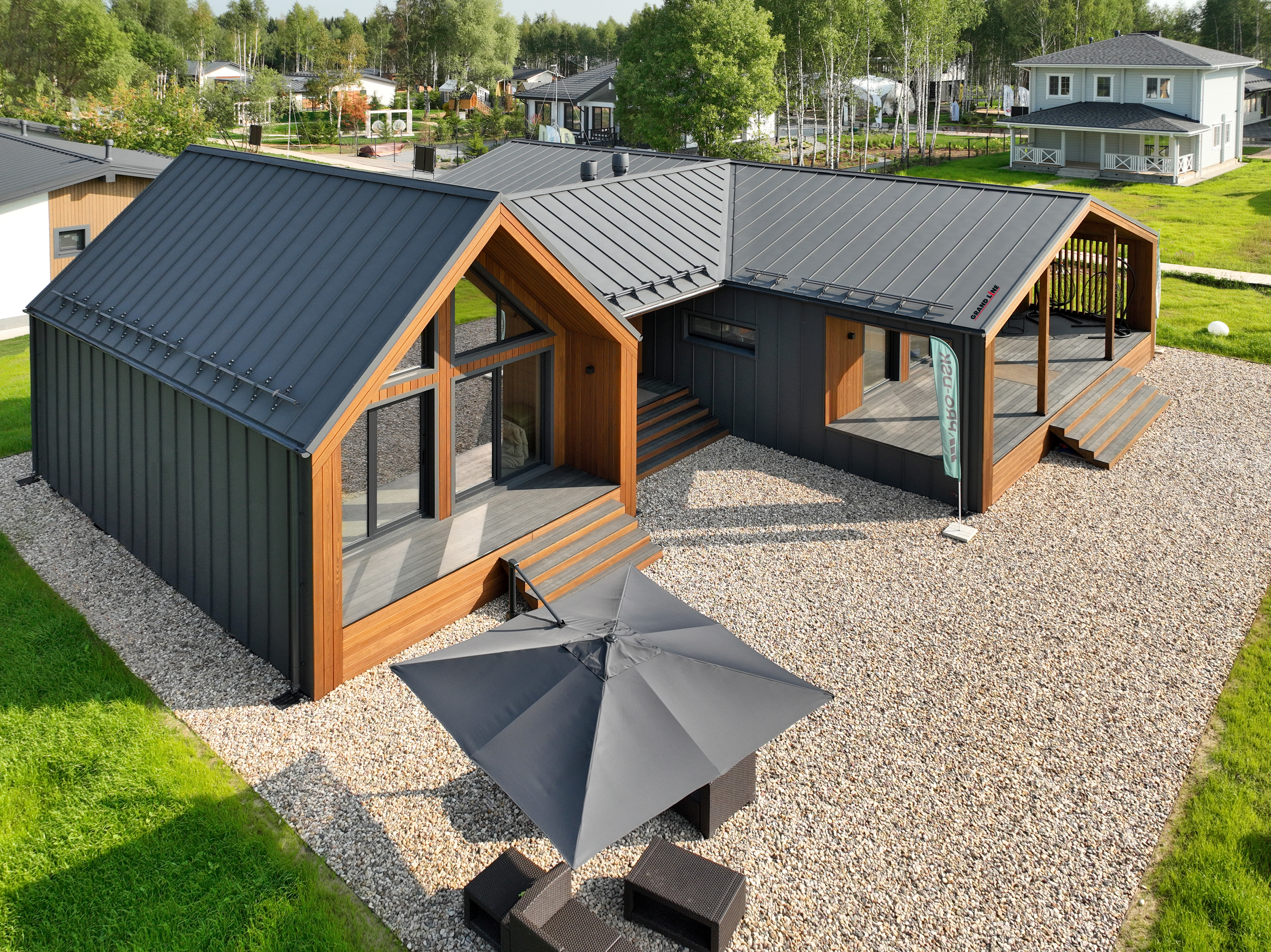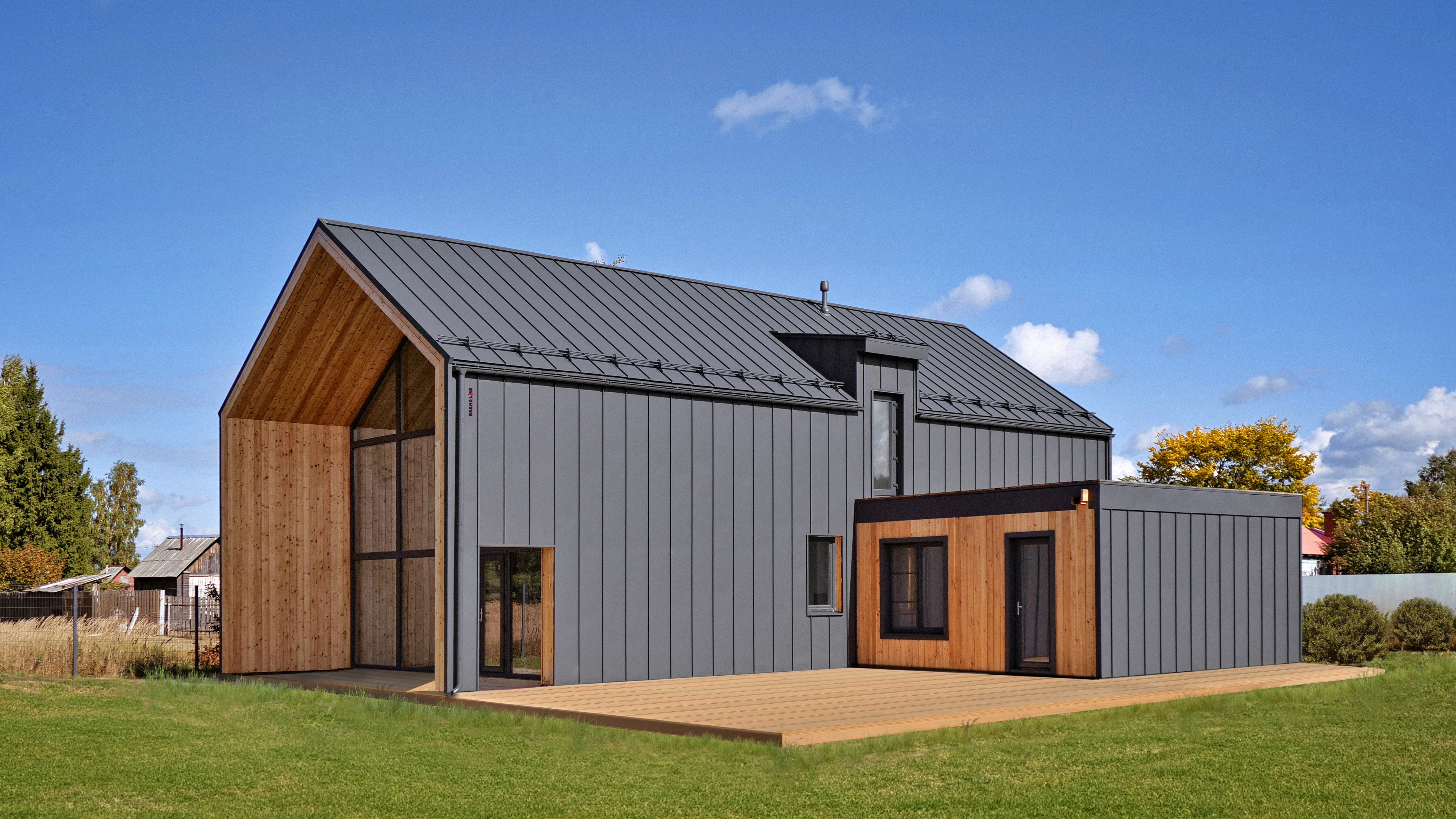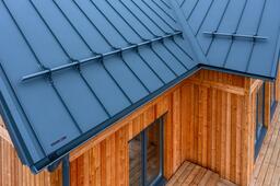 Кликфальц® — актуальный, стильный и надежный кровельный и фасадный материал, который отлично сочетается с различными архитектурными стилями. Благодаря классике линий этот материал понравится даже самым консервативным личностям. Главная особенность этого материала – легкость монтажа. Листы крепятся к обрешетке саморезами через отверстия вдоль замочной части кровли без использования специального оборудования.