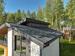 Одной из особенностей кровли, выполненной в панелях фальца, является возможное наличие волнистости на картинах. Вызвана она специфичностью данного материала. Плоская поверхность картины не имеет достаточной жесткости, как следствие волнистость может проявляться из-за напряжения в металле, неровной обрешетки или температурных расширений. Обращаем внимание, что эффект носит сугубо эстетический характер и не влияет на функциональную составляющую фальцевой кровли.