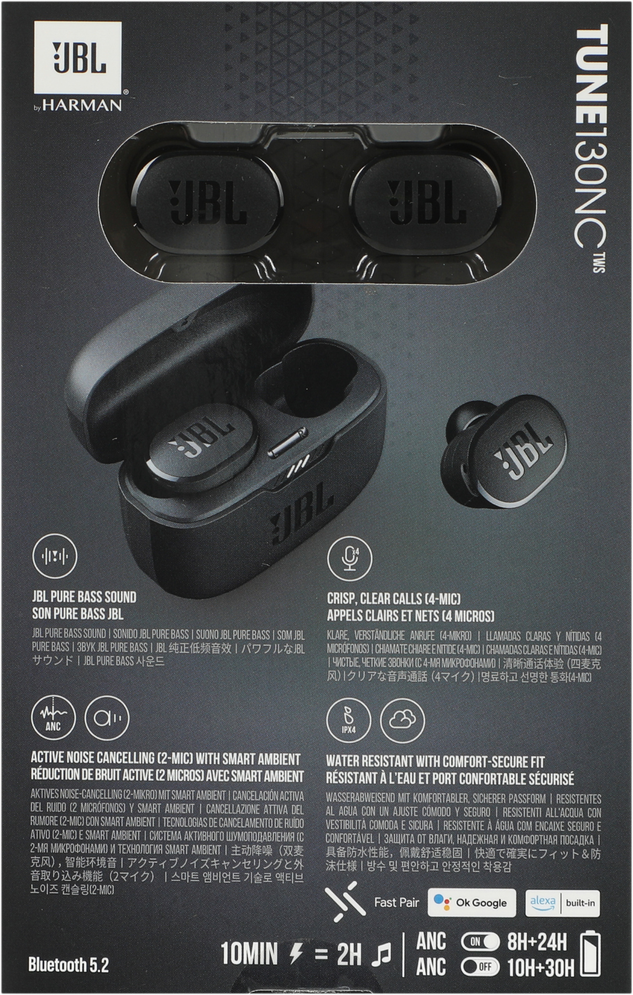 ОсобенностиТехнология JBL Pure Bass. Активное шумоподавление и технология Smart Ambient. 4 микрофона для идеальных звонков. Заряда аккумулятора хватает на 40 часов использования. Защита от воды и пота. Посадка и комфорт в течение всего дня. Приложение JBL Headphones.