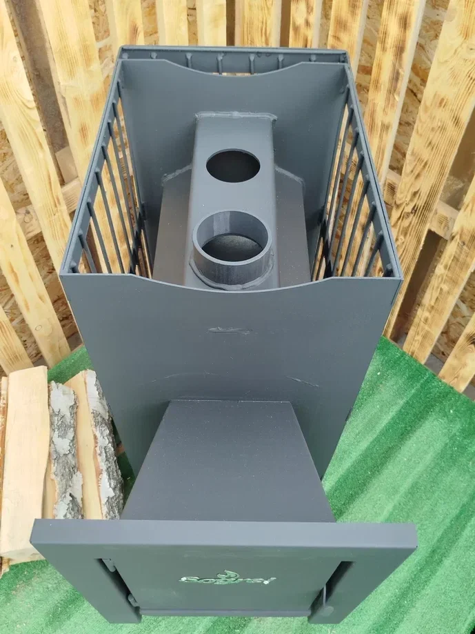 Печь «Сотка 18» - банная дровяная печь с отличными свойствами накапливать и отдавать тепло. Данная модель с открытой каменкой и стальной дверкой. Рассчитана на объем парной до 18 м3. Толщина металла топки 6 мм. Удлиненный топливный канал позволяет производить закладку дров из смежного помещения (предбанника, комнаты отдыха). Преимуществом печи является увеличенная масса камней (до 150 кг), что позволяет получить большее количество мягкого и легкого пара.