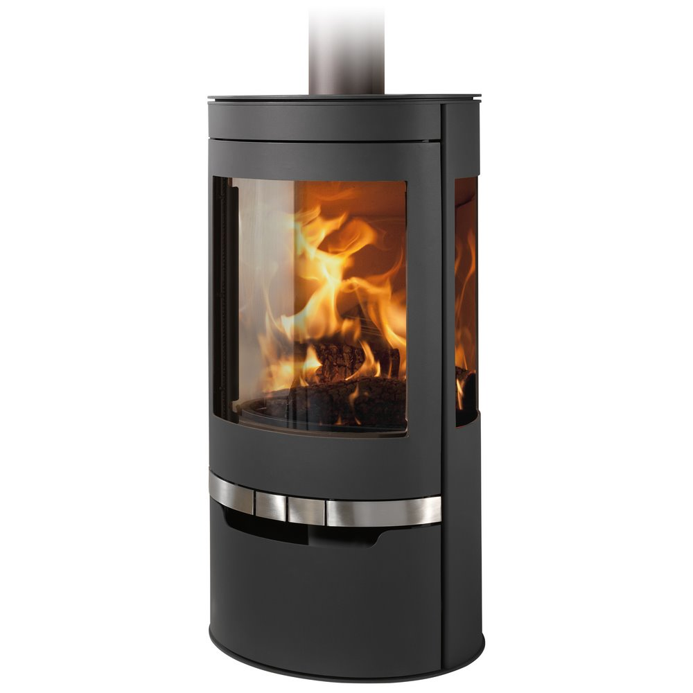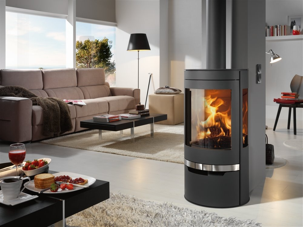 Печь-камин Panadero Suerte Ecodesign помимо стильного современного дизайна отличается технологичностью. Печь позволяет с относительно небольшой закладки дров получить большой красивый огонь. И напротив, если необходимо прогреть помещение, печь способна отопить комнату объемом до 240 м3 . Отзывчивость на регулировки и способность хорошо гореть при минимальной подаче воздуха достигается за счет футеровки топочной камеры вермикулитом , а также правильно спроектированной подачи воздуха. Воздух в печь попадает через отверстие, расположенное в нижней части корпуса. Далее воздух проходит внутри канала по задней стенке печи и частично попадает в топочную камеру через отверстия вторичного дожига. Далее воздух проходит внутри канала, расположенного в верхней части печи, где максимально прогревается, и только потом сильно разогретый воздух попадает на стекло. Благодаря такому сложному каналу подачи воздуха топочная камера очень хорошо прогревается и сажа не оседает на стекле, происходит более полное сжигание топлива. Именно поэтому нет необходимости делать огромные закладки дров для прогрева топочной камеры.