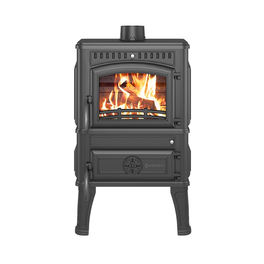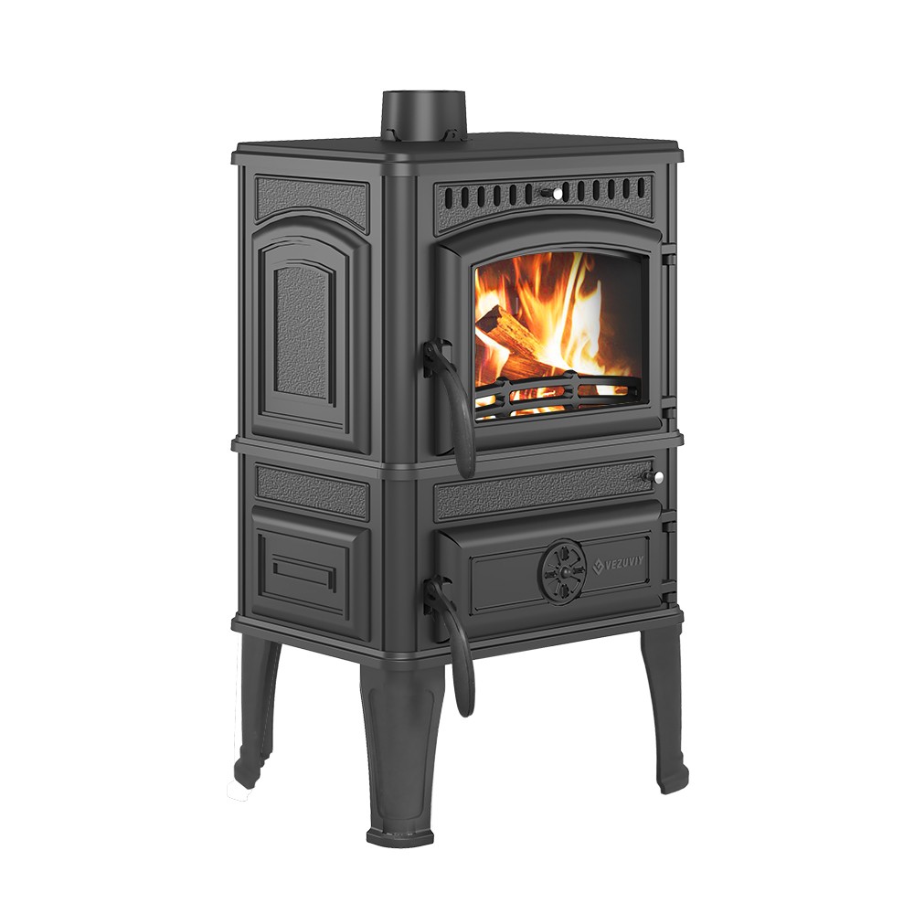 Печь-камин Везувий LV-12 "Антрацит" изготовлена из качественного жаростойкого чугуна (ГОСТ 1412-85) с толщиной стенок 6-8 мм. Вес печи составляет 155 кг. Модель рассчитана на обогрев помещений объёмом до 240 м³.