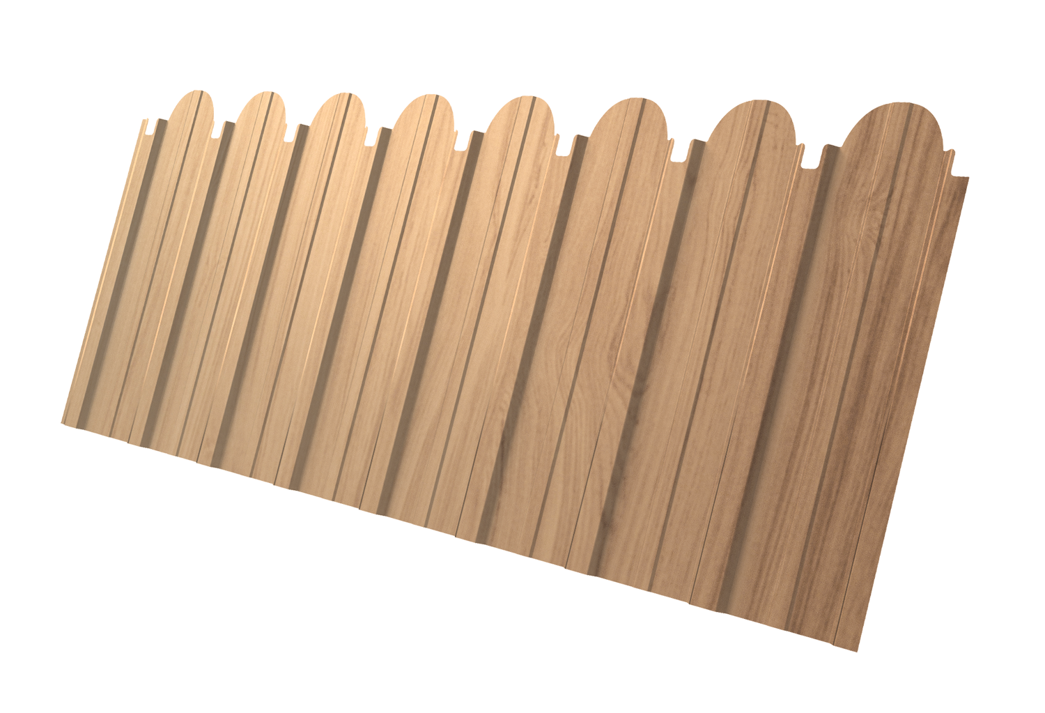 Декоративная вырубка по верхнему краю листа позволяет возвести надежное, экономичное и при этом привлекательное ограждение.
