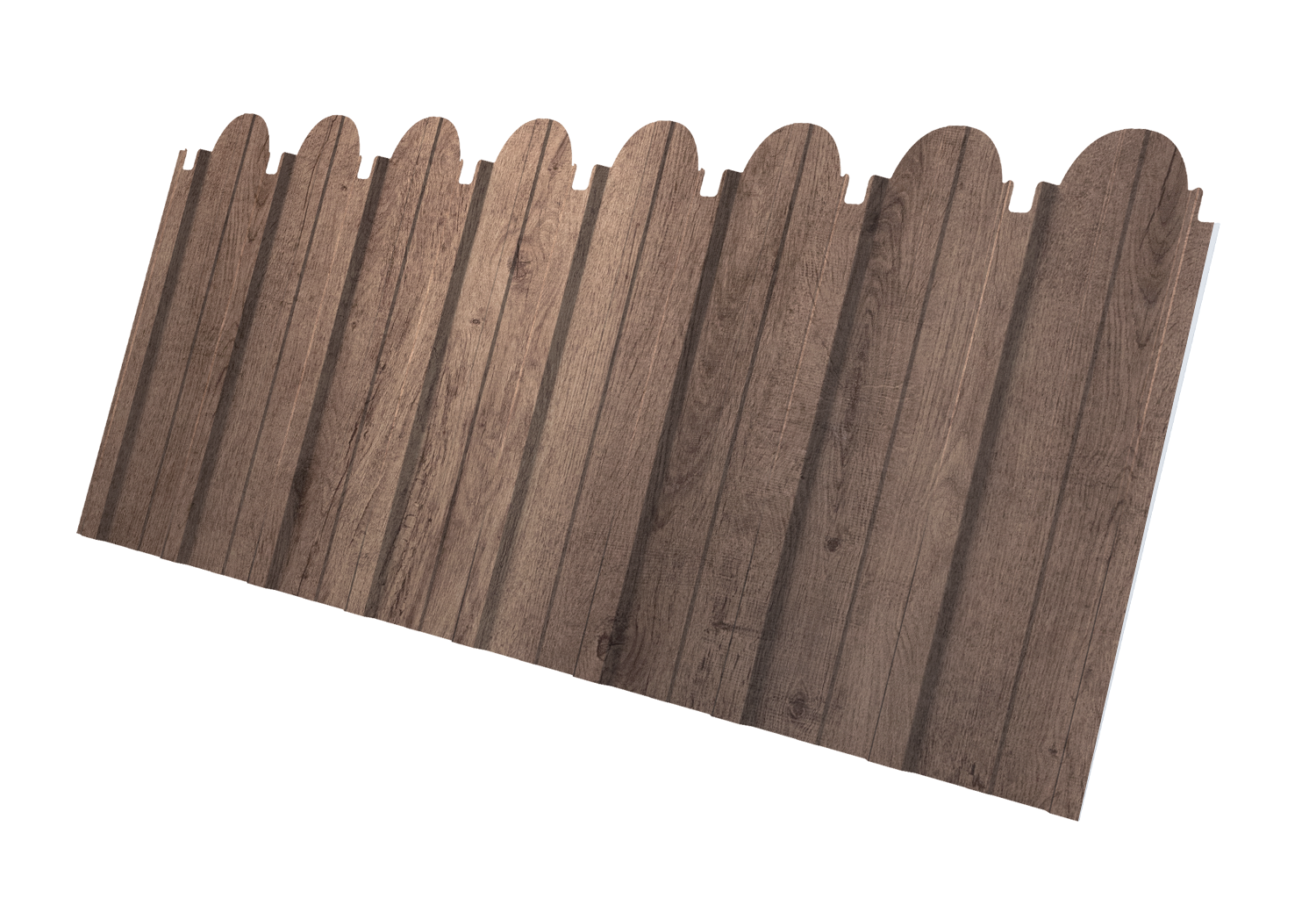 Декоративная вырубка по верхнему краю листа позволяет возвести надежное, экономичное и при этом привлекательное ограждение.