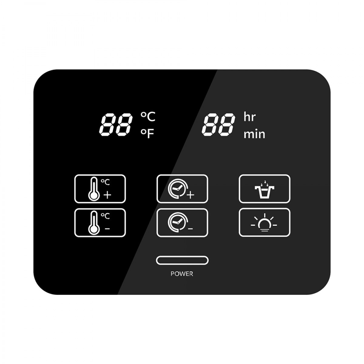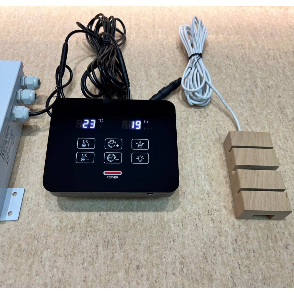 При разработке сенсорной панели управления BORN®CP был сделан упор на гибкость настроек и легкость управления. Отложенный запуск и регулировка продолжительности работы позволят подготовить сауну к использованию к вашему приезду или пробуждению, управление яркостью освещения поможет создать особый уют в парильне, регулировка вентиляции позволит контролировать «тяжесть» воздуха в сауне. Панель оснащена выносным силовым блоком. Возможна настройка управления иным оборудованием в сауне.