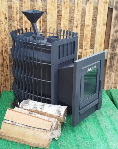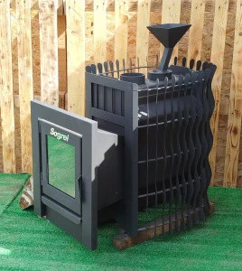 Достоинством модели является двухступенчатое парообразование: вода через трубку с лейкой подается на камни закрытой каменки, разогретые до температуры 600°С, а образующийся пар поступает через паропроводы в открытую каменку. Камни укладываются в решетку с волнообразной поверхностью, обладающей увеличенной наружной поверхностью. Печь быстро прогревает парильное отделение и производит легкий пар эффективнее, чем аналоги.