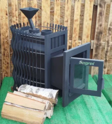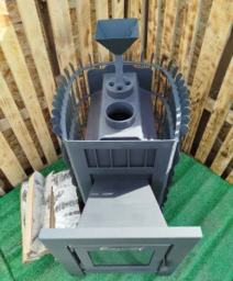 Печь «Дача ЗК 18 Стекло» – банная дровяная печь с закрытой и открытой каменками и дверкой со стеклом 235*250. Толщина металла топки 6 мм. Рассчитана на объем парной до 18 м3. У данной модели решетка выполнена в виде подковы из прутьев волнообразной формы. Камни укладываются в решётку. Удлиненный топливный канал позволяет производить закладку дров из смежного помещения (предбанника, комнаты отдыха).