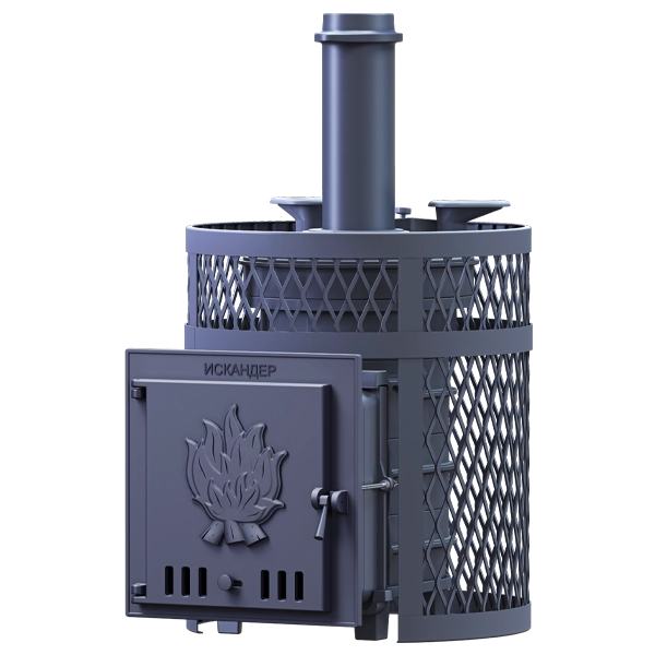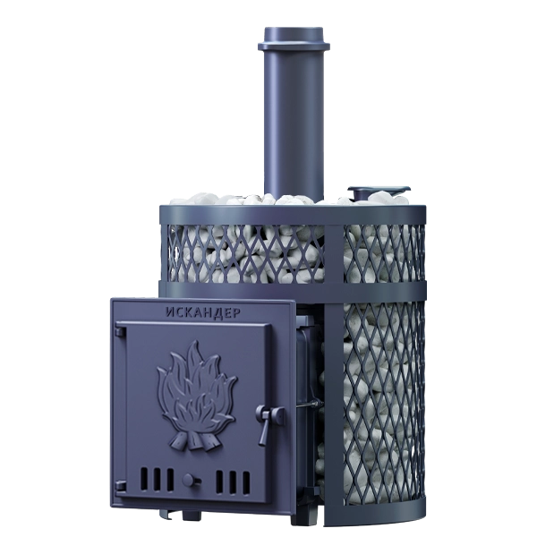 Чугунная банная печь «Искандер» предназначена для отопления парного помещения и генерации мелкодисперсного пара. Печь предназначена для использования совместно с кожухом-сеткой с дальнейшей загрузкой камней, увеличивающих теплоёмкость и снижающих тепловое излучение. Печь рассчитана для создания паровых режимов «русская баня» в условиях индивидуального использования.
