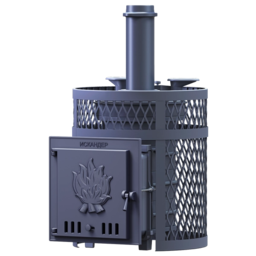 Печь «Искандер 18» с сеткой для камней и глухой дверцой для парных объемом до 18 м. куб. - новый концепт чугунной теплонакопительной банной печи с прямым нагревом заряда.