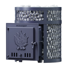 Чугунная банная печь «Искандер» предназначена для отопления парного помещения и генерации мелкодисперсного пара. Печь предназначена для использования совместно с кожухом-сеткой с дальнейшей загрузкой камней, увеличивающих теплоёмкость и снижающих тепловое излучение. Печь рассчитана для создания паровых режимов «русская баня» в условиях индивидуального использования.