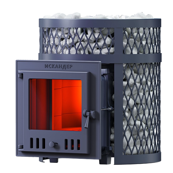 Чугунная банная печь «Искандер» предназначена для отопления парного помещения и генерации мелкодисперсного пара. Печь предназначена для использования совместно с кожухом-сеткой с дальнейшей загрузкой камней, увеличивающих теплоёмкость и снижающих тепловое излучение. Печь рассчитана для создания паровых режимов «русская баня» в условиях индивидуального использования.
