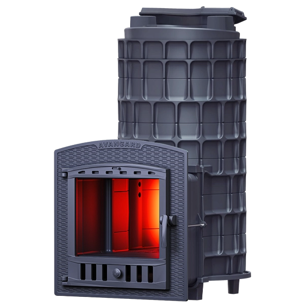 Печь с закрытой каменкой «Авангарт ЗК 40П2» с панорамным стеклом для парных объемом до 40 м. куб. Чугунная банная печь «Авангард 40П2» предназначена для отопления парного помещения и генерации мелкодисперсного пара. Печь предназначена под обкладку, увеличивающую теплоёмкость и снижающую тепловое излучение. Печь рассчитана для создания паровых режимов «русская баня» в условиях индивидуального использования.