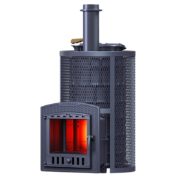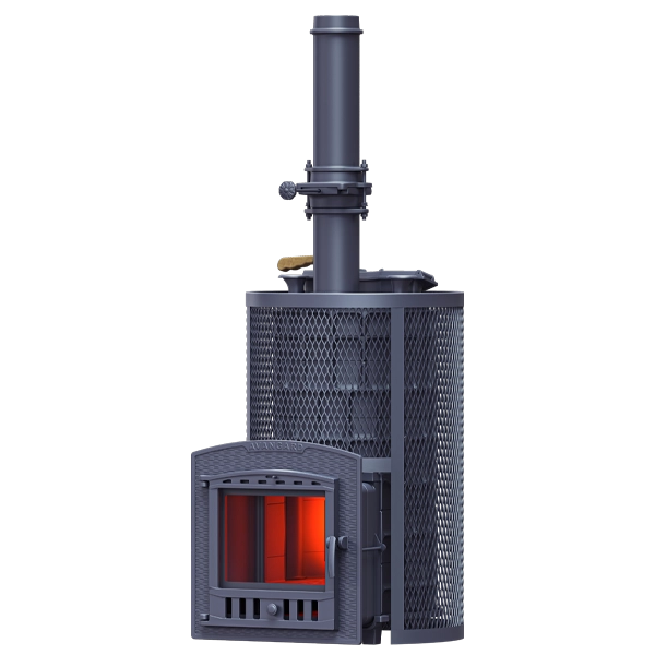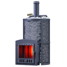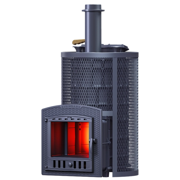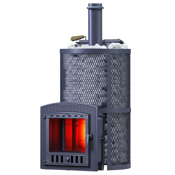 Масса пароиспарителя в печи AVANGARD 62 кг, и он нагревается прямым контактом с пламенем. У пароиспарителя 2 поверхности с увеличенной рабочей площадью – снизу идёт нагрев огнём, а сверху поддаётся вода для пара. У печи уникальная, массивная каменка с теплонакопительными воронками, для получения легкого пара.