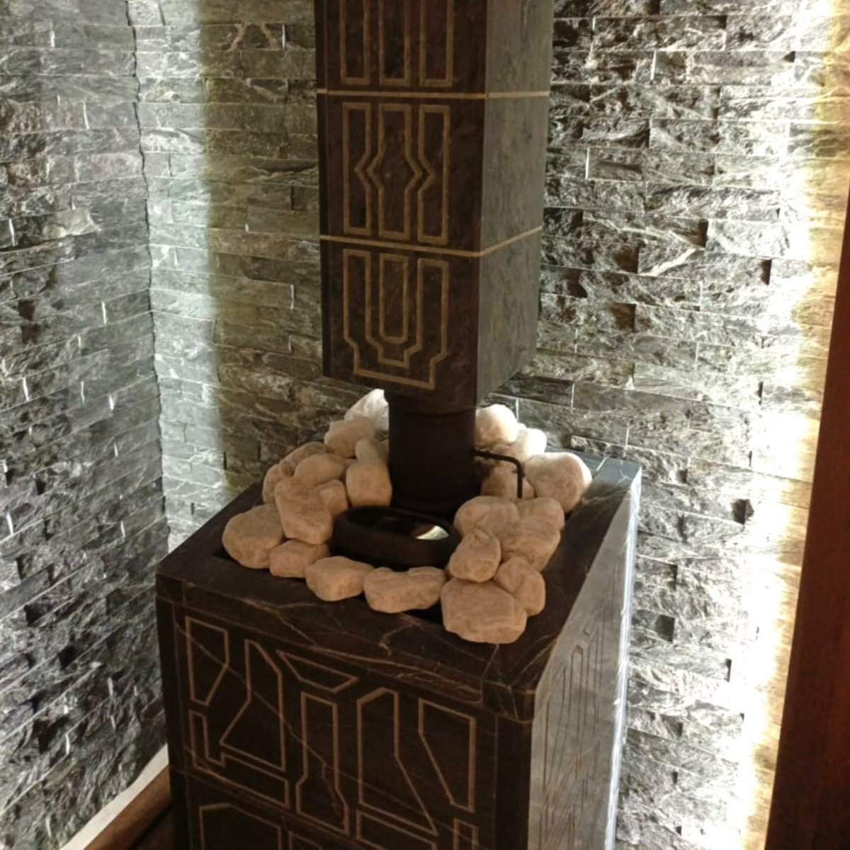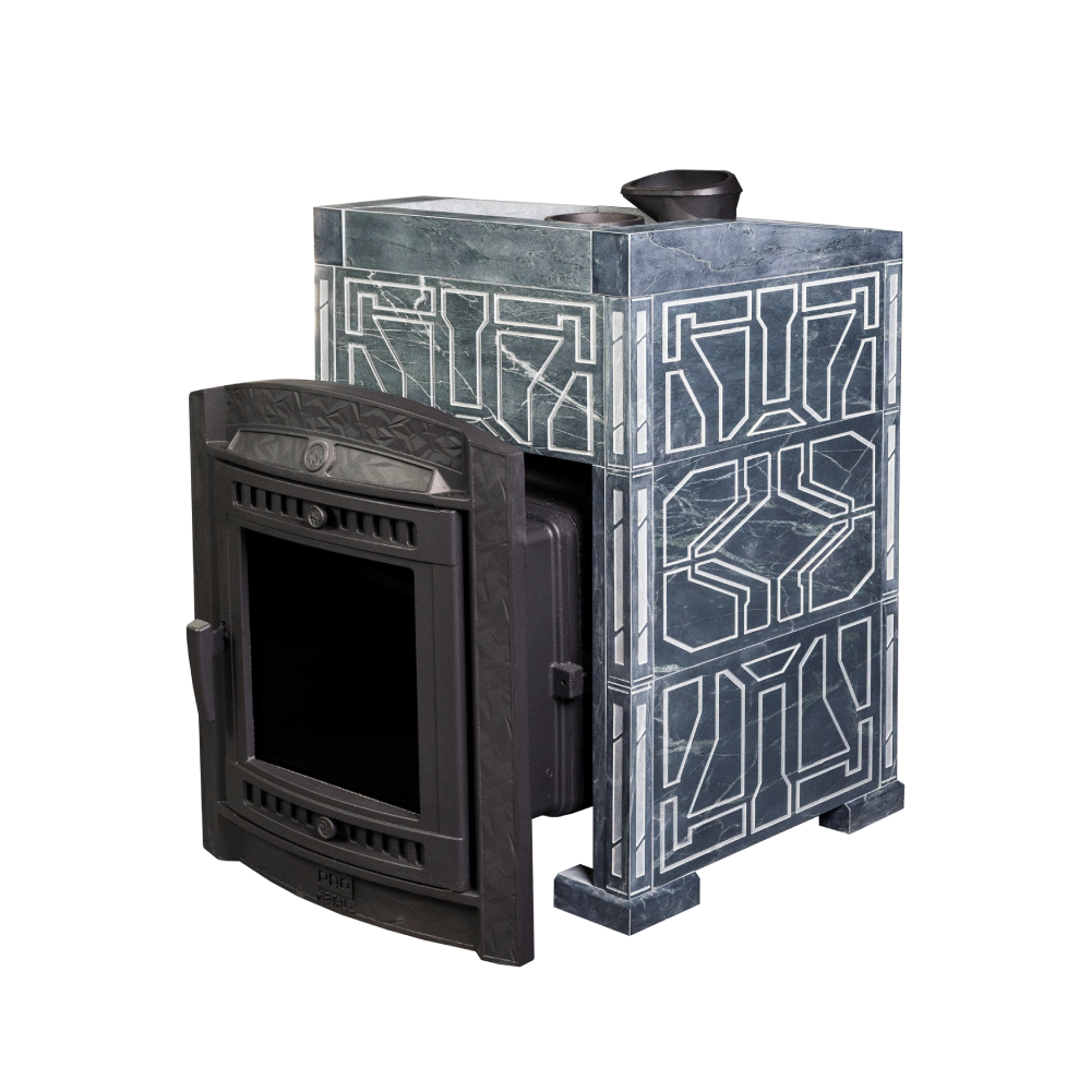 Печь банная ProMetall Атмосфера L в облицовке Талькохлорит Узор №7