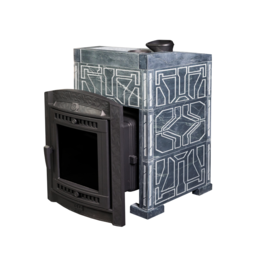 Модель печи в стильной и практичной облицовке из «Талькохлорита» узор №7. За счет использования несущих брусков, состоящих из цельного камня, теплоёмкость печи увеличивается на 50%. Конструкция просто собирается и позволяет легко заменить любую деталь в случае необходимости. Цена и КПД такой облицовки отличаются оптимальным соотношением.