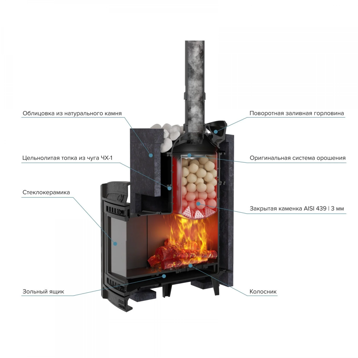 Печь банная ProMetall Атмосфера XL в облицовке Пироксенит