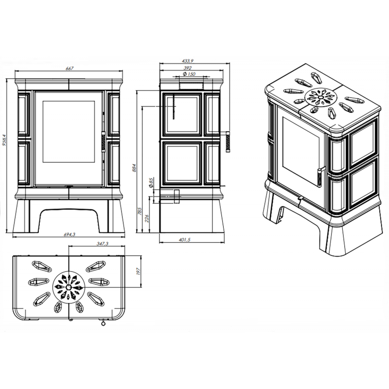 Эта модель также имеет высокую эффективность сжигания, что позволяет не только быстро прогреть помещение, но и снижает расход топлива. Устойчивый к высоким температурам, стальной корпус эффективно распределяет тепло, обеспечивая комфортную обстановку в доме.