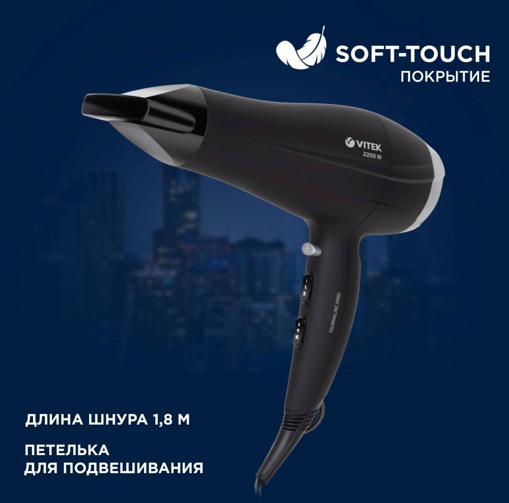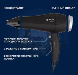 ОписаниеФен VITEK VT-1308 вобрал в себя высокую эффективность в сочетании приятного шоколадного цвета с матовым покрытием. Такой фен всегда будет радовать вас и приятно лежать в руке. Несомненно, мощность в 2400 Вт поможет значительно сократить время сушки волос, благодаря чему волосы не станут сухими.