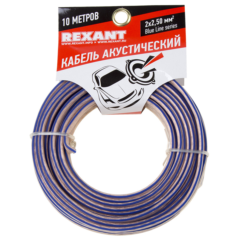 Акустический кабель применяется для подключения звуковых систем и является важным элементом для передачи аудиосигнала.Качественный акустический кабель торговой марки REXANT — залог отличного звука домашней или автомобильной аудиоаппаратуры. Высокое качество изготовления и широкая область применения отличает акустический кабель торговой марки REXANT. Отличное сочетание цены и качества этой продукции порадует любого аудиолюбителя, цель которого — получить чистый звук по выгодной цене.Акустический кабель 2х2,50 мм² Blue Line REXANT состоит из двух параллельных многожильных проводников в изоляции из прозрачного поливинилхлоридного пластиката. Разделительное основание позволяет обеспечить разделение проводников кабеля без повреждения изоляции и оголения жил.