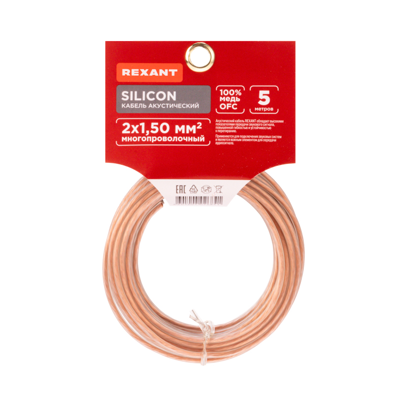 Для получения отличного звучания акустики, даже сложных аудиосистем высокого класса, важно использовать качественный кабель. Ведь параметры и характер звука сильно зависят от выбранного кабеля, его материала и качества изготовления. Акустический кабель SILICON 2х1,50 мм² REXANT отличается высококачественными материалами, надежностью и долговечностью. Проводники кабеля изготовлены из высокоочищенной бескислородной меди, что обеспечивает отличную передачу сигнала в широком диапазоне частот. Жилы в проводниках тоньше, чем в других разновидностях акустических кабелей — это улучшает качество передачи звука.Внешняя оболочка кабеля изготовлена из силикона и имеет прозрачный цвет, одна из жил кабеля состоит из луженой меди. Площадь сечения жил данного кабеля — 1,50 мм². Этот акустический кабель подойдет для любой, даже самой сложной звуковой аппаратуры высокого класса. Хорошее качество делают кабель фирмы REXANT отличным решением для специалистов, профессионально работающих со звуком, а приемлемая цена позволяет использовать его для несложных бытовых задач.
