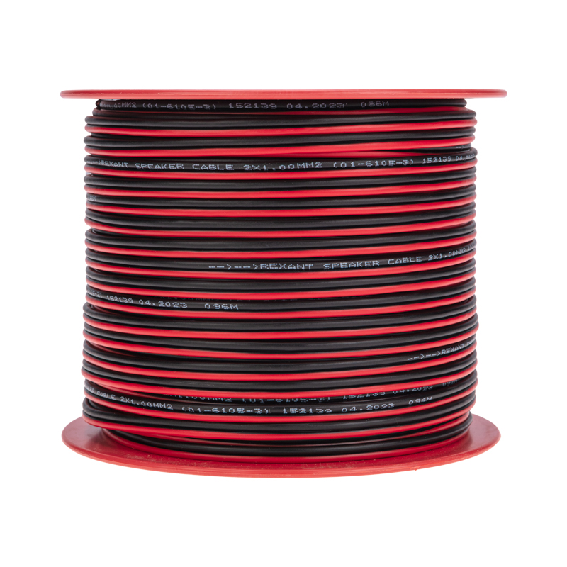 Акустический кабель применяется для подключения звуковых систем и является важным элементом для передачи аудиосигнала. Качественный акустический кабель торговой марки REXANT — залог отличного звука домашней или автомобильной аудиоаппаратуры. Высокое качество изготовления и широкая область применения отличает акустический кабель торговой марки REXANT. Отличное сочетание цены и качества этой продукции порадует любого аудиолюбителя, цель которого — получить чистый звук по выгодной цене.Акустический кабель 2х1,00 мм² REXANT состоит из двух параллельных многожильных проводников в изоляции из поливинилхлоридного пластиката красного и черного цвета. Разделительное основание позволяет обеспечить разделение проводников кабеля без повреждения изоляции и оголения жил.