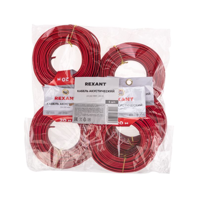 Акустический кабель применяется для подключения звуковых систем и является важным элементом для передачи аудиосигнала. Качественный акустический кабель торговой марки REXANT — залог отличного звука домашней или автомобильной аудиоаппаратуры. Высокое качество изготовления и широкая область применения отличает акустический кабель торговой марки REXANT. Отличное сочетание цены и качества этой продукции порадует любого аудиолюбителя, цель которого — получить чистый звук по выгодной цене.Акустический кабель 2х1,50 мм² REXANT состоит из двух параллельных многожильных проводников в изоляции из поливинилхлоридного пластиката красного и черного цвета. Разделительное основание позволяет обеспечить разделение проводников кабеля без повреждения изоляции и оголения жил.