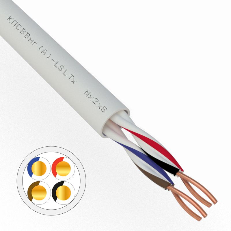 Кабель КПСВВ нг(А)-LSLTx2x2x0,50 мм² REXANT применяется для групповой прокладки в системах пожарной сигнализации, контроля доступа, а также для других систем управления, контроля и связи. КПСВВ нг(А)-LSLTx эксплуатируется внутри и вне помещений, при условии защиты от прямого воздействия солнечного излучения и атмосферных осадков.Название кабеля: КПСВВ нг(А)-LSLTx Описание кабеля: симметричный кабель, парной скруткиТехнические характеристики кабеля: Количество пар: 1-2, сечение токопроводящих жил 0,5-2,5 мм²ГОСТ ТУ: ТУ 27.32.13.-002-0530590-2017Оболочка: поливинилхлоридный пластикат пониженной пожароопасности с низким дымо- и газовыделением и низкой токсичностью продуктов горенияИзоляция: поливинилхлоридный пластикат пониженной пожароопасности с низким дымо- и газовыделением и низкой токсичностью продуктов горенияЖилы: медные однопроволочныеЦвет: белыйНапряжение: до 300 ВРабочая температура: –40…+70 °СТемпература прокладки: –10…+50 °СМинимальный радиус изгиба: 10 наружных диаметров кабеля
