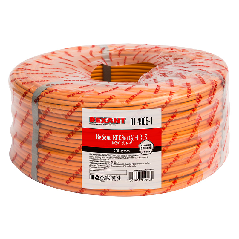 Кабель КПСЭнг(А)-FRLS 1x2x1,50 мм² REXANT симметричной парной скрутки, огнестойкий, не распространяющий горение при групповой прокладке, с пониженным дымо- и газовыделением.Кабель состоит из однопроволочного медного проводника, изоляции из огнестойкой керамизирующейся кремнийорганической резины, дренажного медного проводника, экрана из алюминиевой фольги и оболочки из ПВХ пластиката с пониженным дымо- и газовыделением. Кабель сохраняет работоспособность в условиях пожара в течение 180 минут. Номинальное напряжение тока до 300 В, частотой 50 Гц.Использование кабеля КПСЭнг(А)-FRLS 1x2x1,50 мм² REXANT регламентирует сертификат соответствия Таможенного Союза (EAC). Применяется для одиночной или групповой прокладки (с учетом объема горючей загрузки) цепей питания электроприемников систем противопожарной защиты, операционных и реанимационно-анестезионного оборудования больниц и стационаров, а также в других важных системах жизнеобеспечения, которые должны сохранять работоспособность в условиях пожара.Область применения: - Системы противопожарной защиты;- Системы противодымной защиты;- Охрана пожарной сигнализации (ОПС);- Система оповещения и управления эвакуацией (СОУЭ); - Автоматическая установка пожаротушения (АУПТ). Маркировка КабеляКПСЭнг(А)-FRLS Nх2хS ТУ 27.32.13-001-27284528-2018 REXANT ЕАС РФ (дата, год)где N – число пар, S – cечение токопроводящих жил.