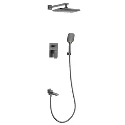 - Комплектация верхний душ, ручной душ (лейка), держатель лейки, шланг, смеситель, излив для ванны
