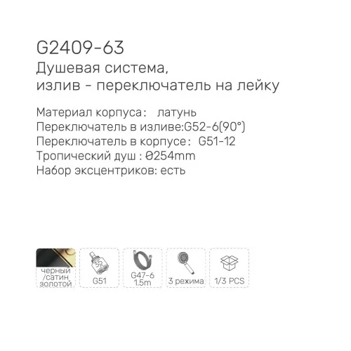 Душевая система Gappo G2409-63 черный/золотой сатин