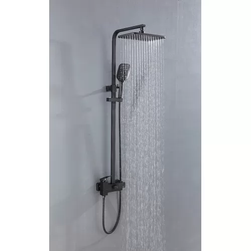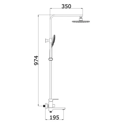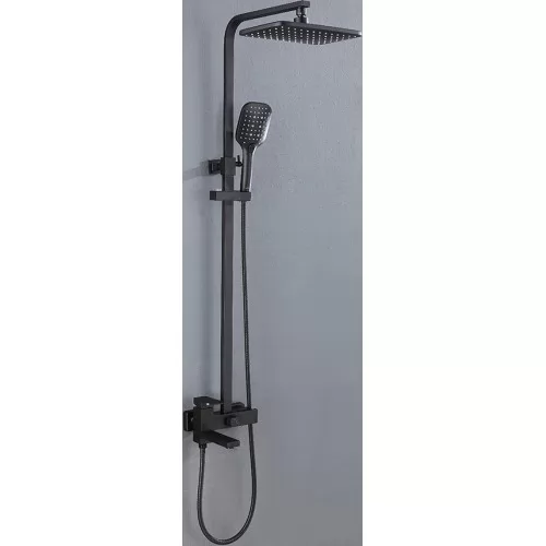 - Комплектация верхний душ, штанга, ручной душ (лейка), держатель лейки, шланг, смеситель, излив для ванны