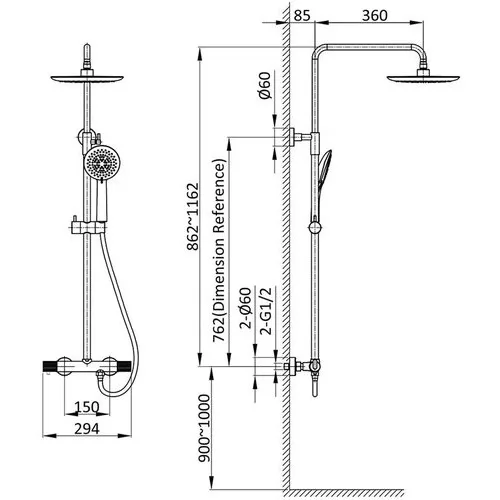 • Высота стойки, мм 862-1162