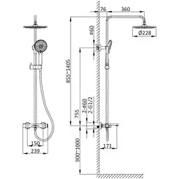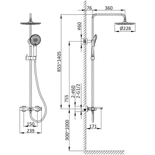 • В комплекте ручной душ, шланг 150 см, держатель лейки