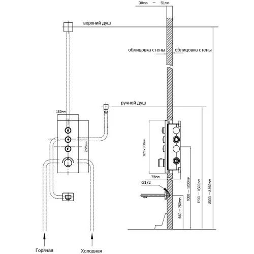 • В комплекте скрытая часть, ручной душ, шланг , держатель для лейки