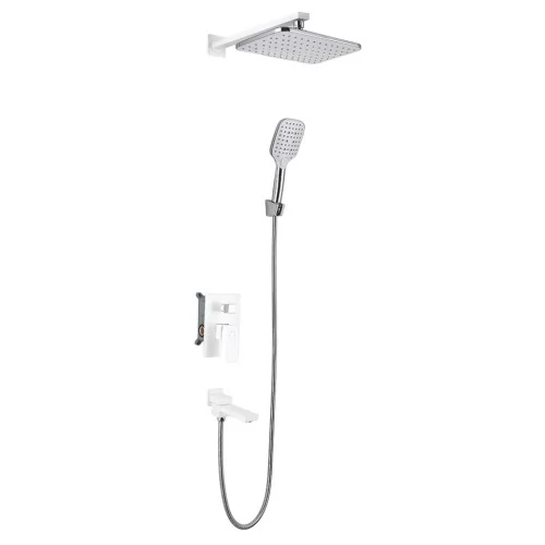 - Комплектация верхний душ, ручной душ (лейка), держатель лейки, шланг, смеситель, излив для ванны