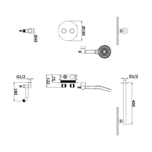 - Свойства скрытого монтажа,с тропическим душем,с ручным душем,с изливом