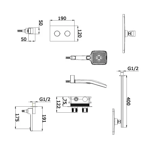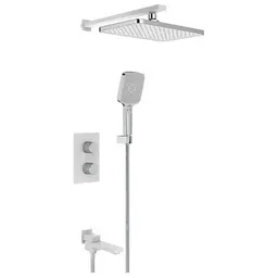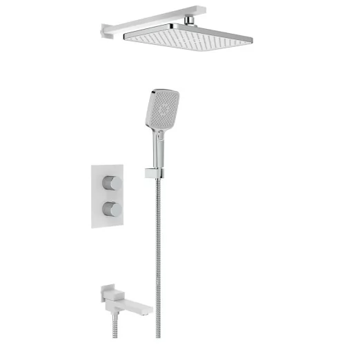 - Комплектация верхний душ, ручной душ (лейка), держатель лейки, шланг, смеситель, излив для ванны