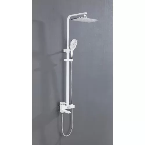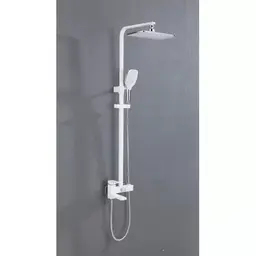 - Комплектация верхний душ, штанга, ручной душ (лейка), держатель лейки, шланг, смеситель, излив для ванны