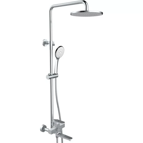 - Комплектация верхний душ, штанга, ручной душ (лейка), держатель лейки, шланг, смеситель, излив для ванны