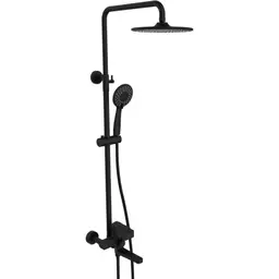 - Комплектация верхний душ, штанга, ручной душ (лейка), держатель лейки, шланг, смеситель, излив для ванны