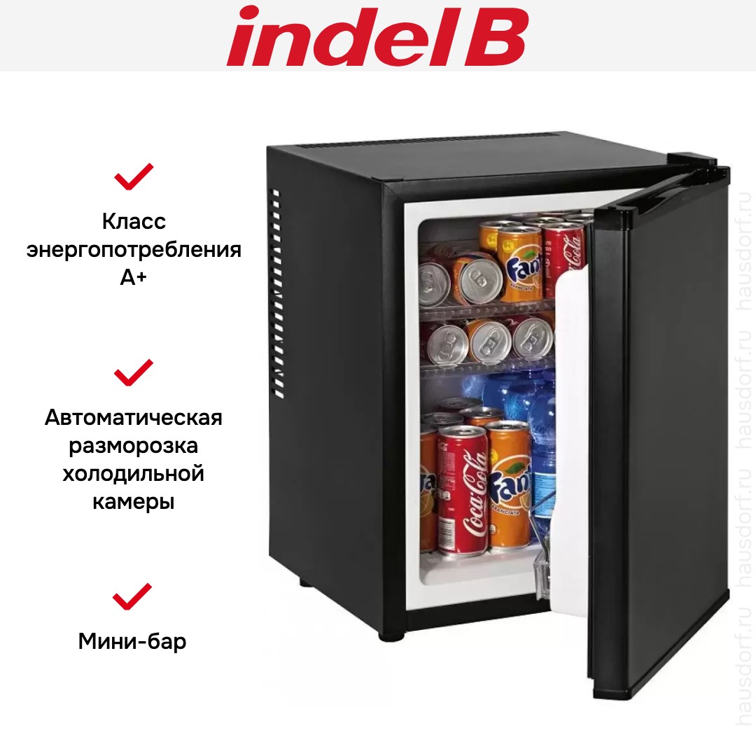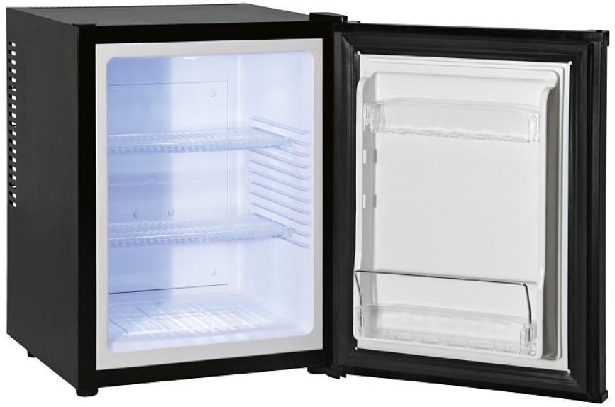 Данная модель работает с помощью элемента Пельтье — термоэлектрическое охлаждение позволяет поддерживать оптимальную температуру в камере, при этом экономя энергию и меньше влияя на окружающую среду. Минибар практически бесшумный, поэтому его можно установить в номере отеля непосредственно рядом с кроватью — вибрации и гудение не побеспокоят сон постояльцев.