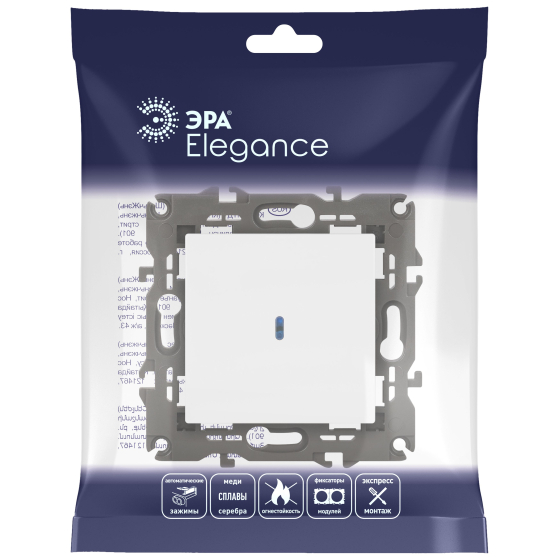 Выключатель ЭРА Elegance 14-1102-01М с подсветкой, 10АХ-250В, белый матовый