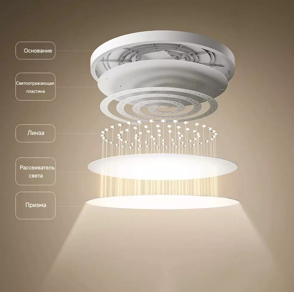 ВозможностиУмный светильник предназначен для установки в таких помещениях, как гостиная, кухня или спальня. Разрешается установка только на бетонный потолок.