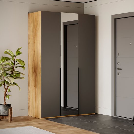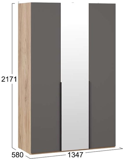 Порто СМ-393.07.112 с 2 глухими и 1 зеркальной дверями (яблоня беллуно/графит софт)