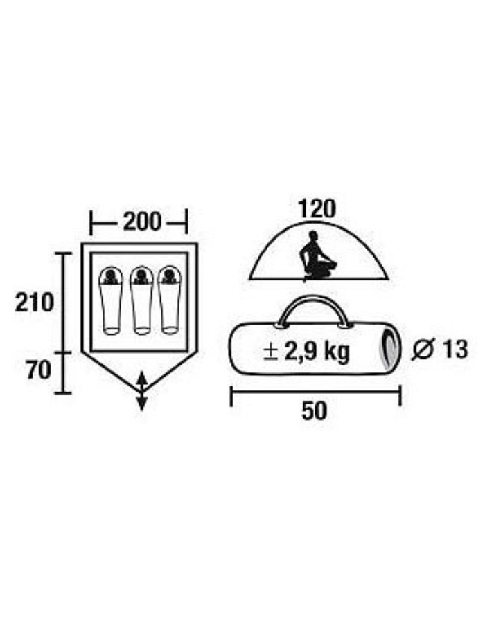 Размеры внутренней палатки (ДхШхВ): 210x200x120 см