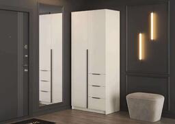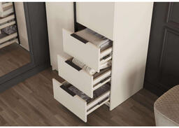 Две створки и три выдвижных ящика : Шкаф оснащен двумя створками и тремя вместительными ящиками на шариковых направляющих полного выдвижения, обеспечивающими легкий доступ к содержимому.