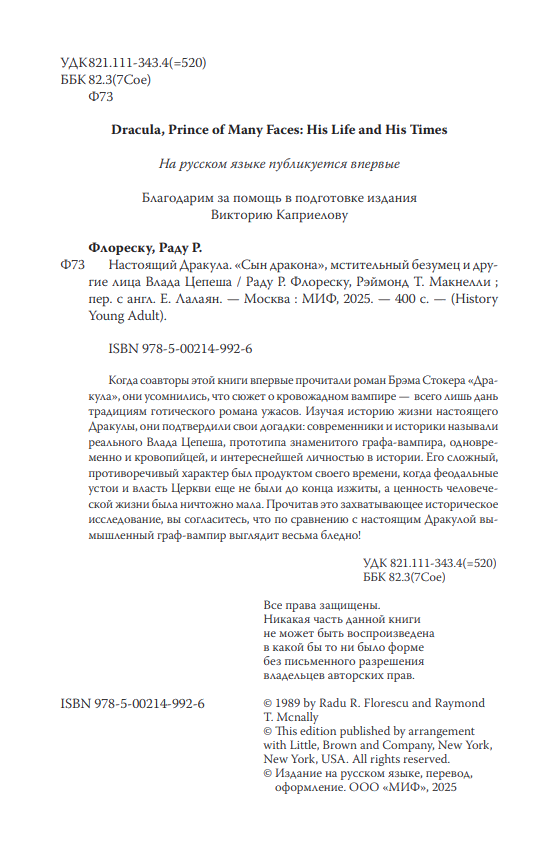 Книга МИФ Настоящий Дракула, твердая обложка (Макнелли Рэймонд, Флореску Раду)