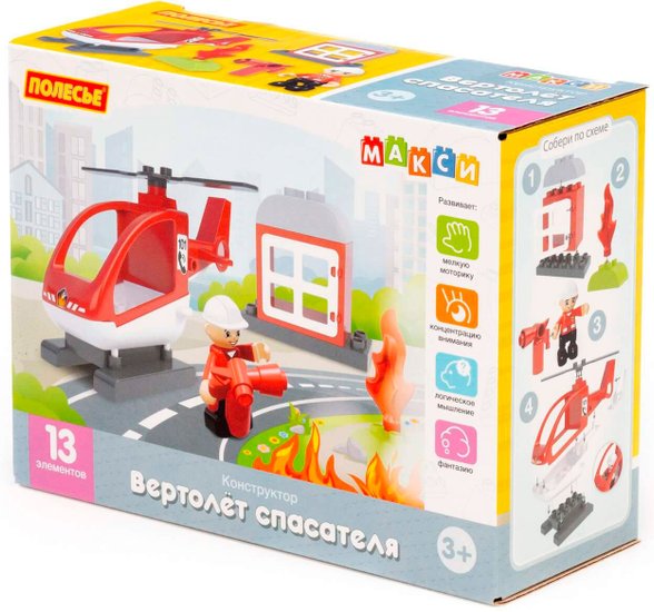✅ Серия конструкторов "Полесье" МАКСИ разработана специально для творческого развития детей. Привлекательная форма элементов, яркие цвета и простая геометрия способствуют развитию практических навыков конструирования. ✅ В процессе игры с конструктором у ребёнка развиваются фантазия, воображение, желание придумывать истории и сюжетные линии. Конструктор устойчив к износу и воздействию высоких температур. ✅ Элементы имеют яркий насыщенный цвет, а детали округлой формы безопасны для игры. Конструктор подходит для одиночной и коллективной игры. ✅ Элементы конструктора обучают основам моделирования и конструирования. Тренируют интеллектуальные возможности: усидчивость, внимательность и целеустремлённость. ✅ Развивают воображение и творческие способности, пространственное и ассоциативное мышление. ✅ Конструктор «Макси» - «Вертолёт спасателя» (13 элементов) позволит ребёнку фантазировать: играть с игрушечным героем, летать на вертолете и тушить пожары. ✅ Игра с конструктором позволит придумывать различные игровые сценарии. В набор входит 13 элементов конструктора.✅ Серия конструкторов "Полесье" МАКСИ разработана специально для творческого развития детей. Привлекательная форма элементов, яркие цвета и простая геометрия способствуют развитию практических навыков конструирования. ✅ В процессе игры с конструктором у ребёнка развиваются фантазия, воображение, желание придумывать истории и сюжетные линии. Конструктор устойчив к износу и воздействию высоких температур. ✅ Элементы имеют яркий насыщенный цвет, а детали округлой формы безопасны для игры. Конструктор подходит для одиночной и коллективной игры. ✅ Элементы конструктора обучают основам моделирования и конструирования. Тренируют интеллектуальные возможности: усидчивость, внимательность и целеустремлённость. ✅ Развивают воображение и творческие способности, пространственное и ассоциативное мышление. ✅ Конструктор «Макси» - «Вертолёт спасателя» (13 элементов) позволит ребёнку фантазировать: играть с игрушечным героем, летать на вертолете и тушить пожары. ✅ Игра с конструктором позволит придумывать различные игровые сценарии. В набор входит 13 элементов конструктора.