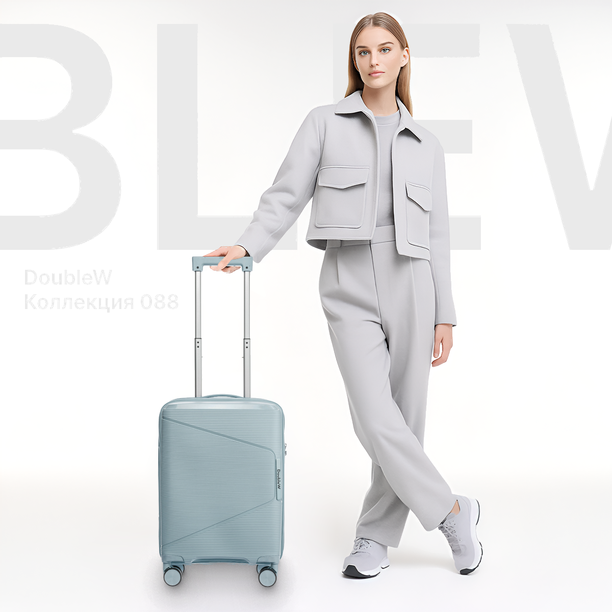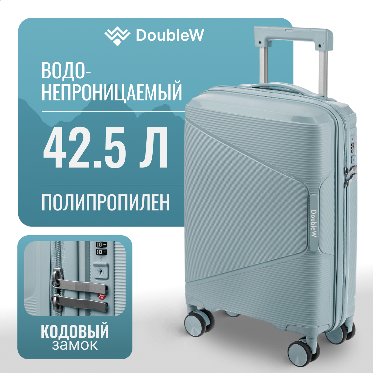 Чемодан на колесах DoubleW 088 (S, светло-голубой)