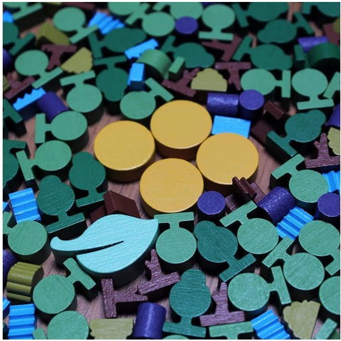 Комплектація60 фішок великих дерев, 55 фішок малих дерев, 45 фішок паростків, 42 картки біомів (по 6 на кожен біом), 36 циліндричних маркерів, 20 фішок кущів, 20 фішок озер, 4 фішки сонця, 4 планшети планети, фішка першого гравця, правила гри